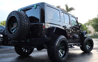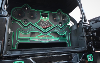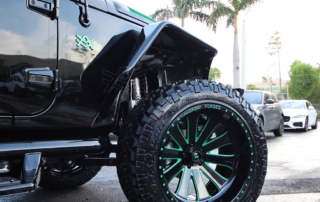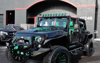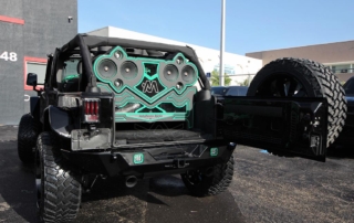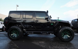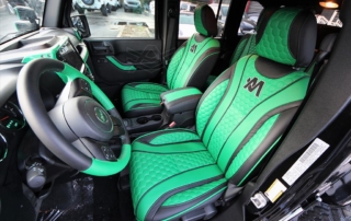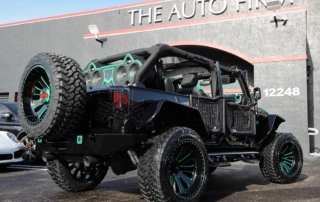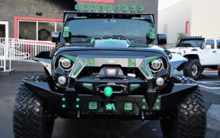 This Avorza Jeep Wrangler Hulk Edition built for Adalberto Mejia from the Minnesota Twins is definitely a sight to see. From the custom paint job to the massive sound system it’s presence just can’t be ignored. On the exterior this build is equipped with Fab Fours full metal jacket full width bumper with full metal winch modifier, Warn recovery 8000lb winch, Poison Spyder brawler full width rear bumper, Smittybilt XRC flux front and rear fender flares, Nfab N Durastep wheel to wheel round nerf steps and DV8 heat reduction hood. One thing you’ll notice on the bumpers is the green mesh we add to give the jeep that personalized style. That mesh doesn’t come with the kit we fabricate it ourselves in house on our Techno CNC machine giving each build its own unique pattern. Once its ready we then paint the mesh either an accent color or color match it to the bumpers depending on the build. In this particular jeep it was painted green to enhance the green accents all around the jeep. the green was mixed to match the interior leather chosen for this build. A custom single stitch honey comb pattern with black accents on the two front bucket seats and rear bench seat. But as if that interior set up wasn’t enough there’s also an Alpine i209- WRA weather resistant 9 inch restyle mech-less in dash system with reverse camera compatible with both Apple and Android. One cool feature this radio has is that it allows you control the lights right from the radio. All the Rigid D series light pods along with the HID projector revision 2.0 headlights this custom logo in the center that lights up in green all controlled by the touch of a screen. Having the ability to pair your phone for me is a big plus. I’m sure there is a lot of us who aren’t too tech savvy so the fact that the screen can mirror your phones screen showing you all your apps the way you have them makes it real easy to navigate and find what your looking for. No more searching for a song on your phone then waiting for the phone to connect to the radio to hear it now its all just a touch away. But what good is that without a killer sound system am I right? Well the sound system on this beast is no joke. Hertz HP 3001 D class mono amp with crossovers, SV 200.1 SPL show series 8” speakers, HDP4 4-channel 1000w Max D class amp, St 44 bullet compression tweeters, MPK 165.3 PRO, MPX 165.3 pro coaxial 2-way speakers, SV 165 6.5 speakers, St 25 set tweeters, SFD41C.1 1/10 gauge 4 way fuse and distribution block, along with Kicker 10” subs, 4 channel RCA’s, and 3.3ft x- series 2 channel RCA audio cable. All this powered by XS power batteries D1400 and Singer custom alternator upgrade. On the suspension side this wrangler is equipped with a 2.5 inch lift on Fox Racing front and rear shox 2.0 performance series reservoir shocks, with a Fox ATS steering stabilizer that allows you to adjust the ride to your liking. The 2.5 inch lift allows for more ground clearance and the ability to run some 35s on those AVF49C Avorza Forged Wheels. When upgrading to bigger wheels and tires the spare tire holder does need to be changed. For this build we chose Rampage rear tire mount its all metal and more than capable of handling the extra weight. With the Magnaflow MF series Axle-back exhaust system I think there will be more revs and les stops but when the time comes to hit the brakes stopping won’t be an issue with the new Bear Brake system installed plus with the RECON OLED bar-style LED taillights everyone’s sure to notice your stopping a mile away. All in all this is one great build with a lot of work put into it. This Avorza Edition beauty is definitely one for the books.