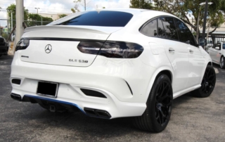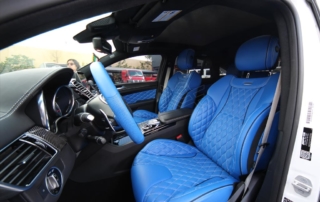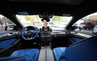 The Mercedes GLE coupe AMG 63S is a crossover like no other. The perfect balance between luxury and sports car. The 5.5L v8 biturbo engine producing 577 hp growls with every acceleration followed by the beautiful burbles with every downshift. With different drive modes like eco, comfort, sport, sport plus and individual it’s easy to have the GLE perform exactly how you want it. On the outside the Mercedes GLE has an amazing design but the matte black textured plastic around the fenders and bumpers don’t do the design of the car any justice. On the build we decided to color match all the plastics to the body color of the car and add some black and blue accents to really bring this beast to life. A 22″ set of Avorza AV53 Forged Wheels finished in gloss black with blue accents to highlight the blue accents around the exterior of the car. And the final unique touch on this Avorza Edition masterpiece a full blue interior with door panels and steering wheel to match. All custom made in house and hand stitched.