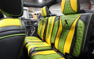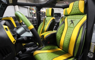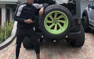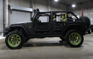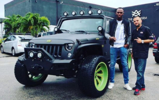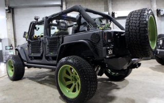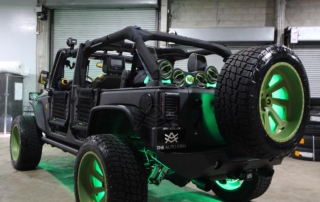 It was 2008 and everyone was glued to Olympics everywhere you went it was on all the TVs and had no problem getting the attention of all that passed by. Many great accomplishments were made by many extraordinary athletes from all over the world. Michael Phelps took home his eighth gold metal and Usain Bolt became known as the fastest man on Earth. From that point on you couldn’t bring up speed and not mention his name. So, what does the world’s fastest man do when he wants to slow down, relax and take a nice little drive? He jumps in an Avorza Edition Jeep Wrangler fully built just for his needs. With a 3” full fox suspension set up, 22” Avorza AVF44C Forged Wheels, and 325/50/22 Nitto Terra Grappler G2 tires there is no place this monster can’t go. It’s hard to miss textured matte black custom paint job on the exterior of this jeep with lime green and yellow accents. the textured paint is a special Rhyno liner paint that is mainly used in truck beds due to how durable the paint is. Since this build was being shipped to his home in Jamaica, we knew this monster was going to see real off-road conditions because I mean who wouldn’t love to take one of our Avorza Jeeps in some trails around Jamaica? We wanted to give him something that could take anything that comes its way but still gave him that matte aggressive style he was looking for. The Rhyno liner paint job was the perfect choice. VPR front bumper, Poison Spyder rear bumper and Crusher fender flares helped enhance the overall style we were going for. For the lighting we went with nine high powered LED round lights on the front end for that old school safari feel. You can never have too much light. In each of our builds we like to add something unique to its owner. Something that they request to make sure the build is a one of a kind masterpiece made just for them. In bolts case he wanted the Jamaican Flag colors to be incorporated into his build. this idea was brought to life in the interior with custom hand stitched seats in yellow, green, and black leather with yellow contrast stitching. The seats were finished off with his custom logo added to the center of each seat. Sound is important anywhere you go so a full sound system was a must. We went with a full Audison Hertz sound system and custom-built box with beauty panel all fabricated in house on our CNC. The final touch was a Magnaflow cat back exhaust system for a deep growl to create the feeling that he’s traveling as fast he can run on foot while cruising in the jeep. because its no secret he could out run the Jeep if he wanted too.